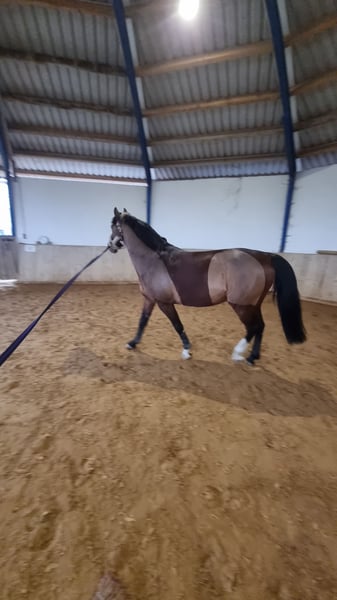 Annuncio di vendita: Castrone Zangersheider Video: https://youtu.be/URVUo0nBtP8?si=tNQ4DfUiEi9wuwPo In vendita un impressionante castrone Zangersheider, nato il 17 giugno 2021. Con un’altezza al garrese di circa 162 cm e un mantello nero-ramato elegante, non è solo un vero spettacolo visivo, ma anche un talento promettente nel salto ostacoli. Questo giovane castrone si distingue per le sue ottime movenze e le sue capacità tecniche di salto. Già mostra un grande potenziale e si adatta sia a cavalieri amatoriali esigenti che a professionisti. Il castrone è ben educato, mansueto in maneggio e possiede un carattere amichevole e giocoso. È molto collaborativo sia in stalla che durante l’allenamento e dimostra una forte volontà di apprendere. Se siete alla ricerca di un cavallo da salto talentuoso con ancora molto margine di crescita, questo castrone Zangersheider fa sicuramente al caso vostro. Direttamente dal selezionatore TÜV disponibile su richiesta Per ulteriori informazioni o per fissare un appuntamento di visione, contattatemi al numero di telefono 017697984838 (preferibilmente via WhatsApp). https://www.horsetelex.nl/horses/pedigree/2652303/carlitto-z