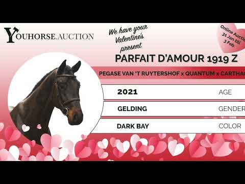 Tall modern sport horse with scope, canter and attitude Parfait d’Amour 1919 Z is a tall, modern sport horse with an attractive dark brown appearance. He jumps with scope and shows a good attitude. With only two months under saddle, he already displays a big canter with balance and overview. A modern type that convinces with power, posture and clear potential for higher level sport. Sire Pegase van ’t Ruytershof (Comme Il Faut x Cartani) competed internationally at 1.55m level and is Elite with BWP, licensed with BWP and SF. Through Comme Il Faut (1.60m) and Cornet Obolensky (1.60m), he transmits reflexes, scope and modern sport quality from the renowned Ruytershof line. Damline The dam is Sofia (Quantum), descending from an exceptionally strong Holsteiner performance family. Quantum competed internationally at 1.60m level and is known for passing on scope and canter. This damline has produced numerous international sport horses and approved stallions, including: – VDL Groep Quinara (Quinar), international 1.60m – Memphis (Quinar), approved stallion, international 1.60m – Anna Sofia (Quo Vados I), international 1.45m – Lorenzo (Cornet Obolensky), international 1.40m – Di Quanthago 1919 Z (Diamant de Semilly), international 1.40m – Wodka (Ephebe For Ever), international 1.40m – Intense Royal Z (Inshallah de Muze), international 1.35m – Cadir 5 (Casall), international 1.40m Further back, influential sires such as Quidam de Revel, Carthago, Cornet Obolensky and Casall confirm the depth and consistency of this damline.